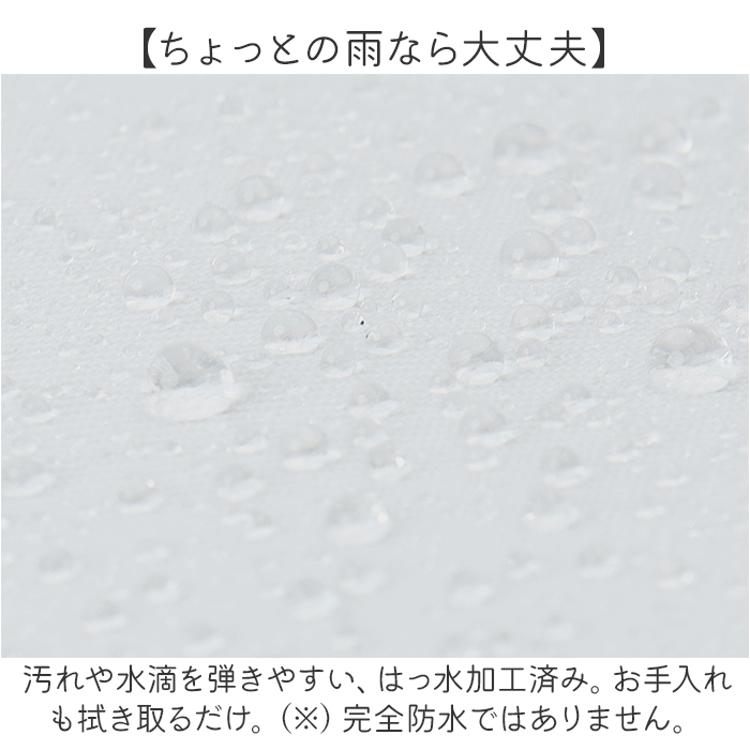 ・汚れや水滴を弾きやすい、はっ水加工済み。お手入れも拭き取るだけ。