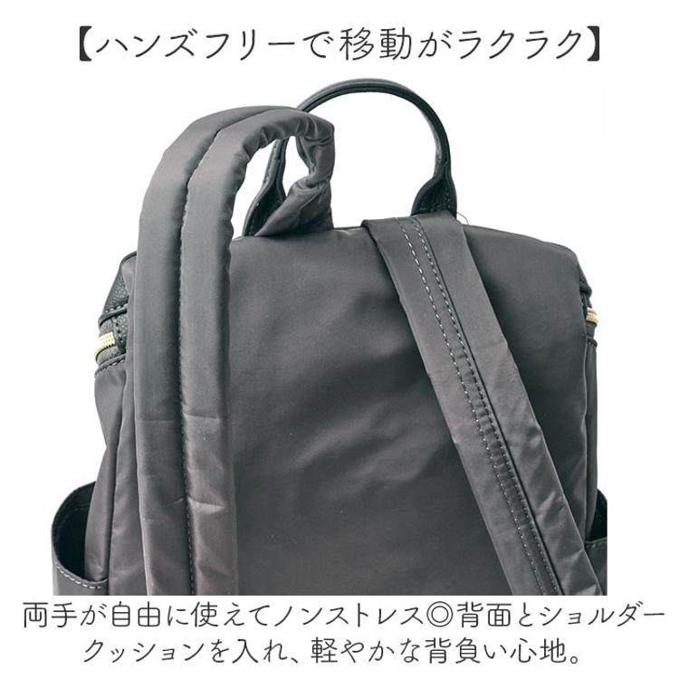 ・両手が自由に使えてノンストレス◎背面とショルダークッションを入れ、軽やかな背負い心地。
