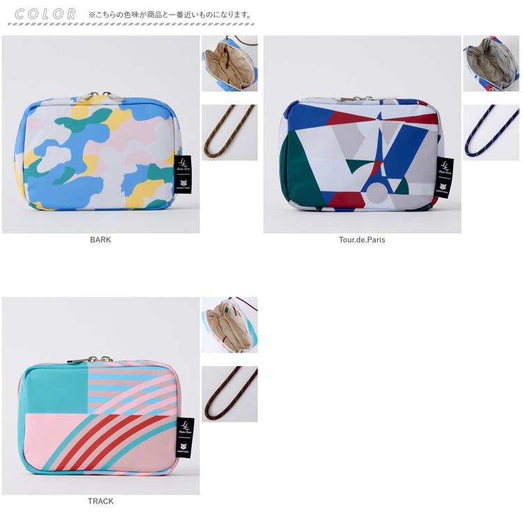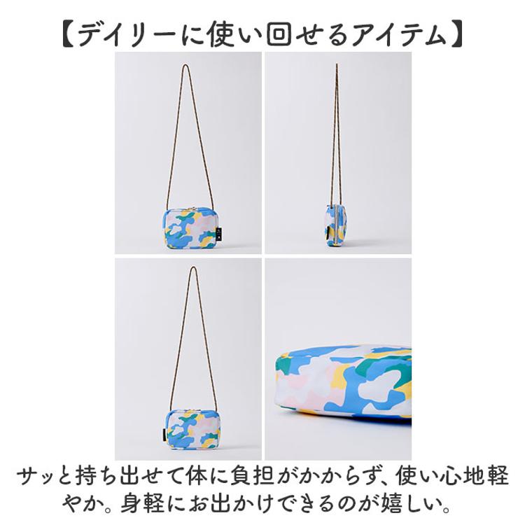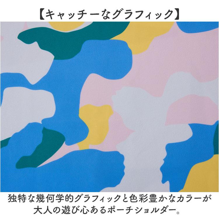 ・独特な幾何学的グラフィックと色彩豊かなカラーが大人の遊び心あるポーチショルダー。