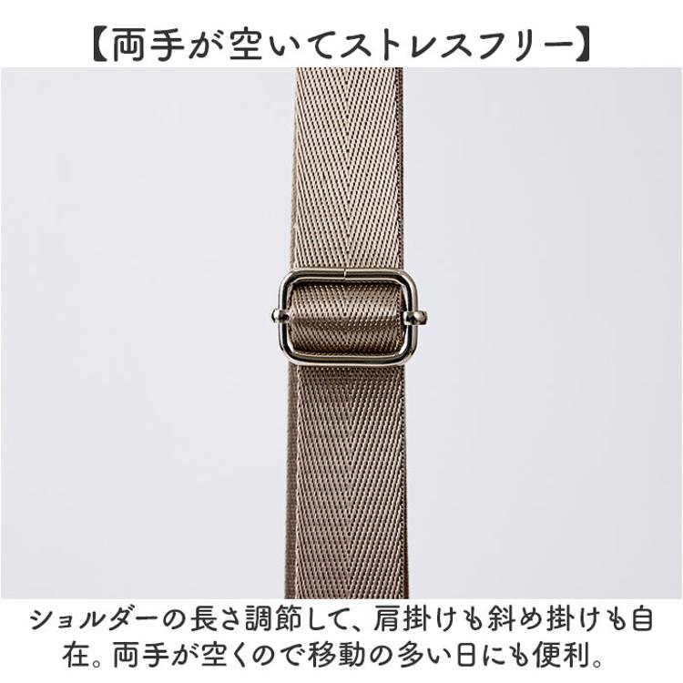 ・ショルダーの長さ調節して、肩掛けも斜め掛けも自在。両手が空くので移動の多い日にも便利。