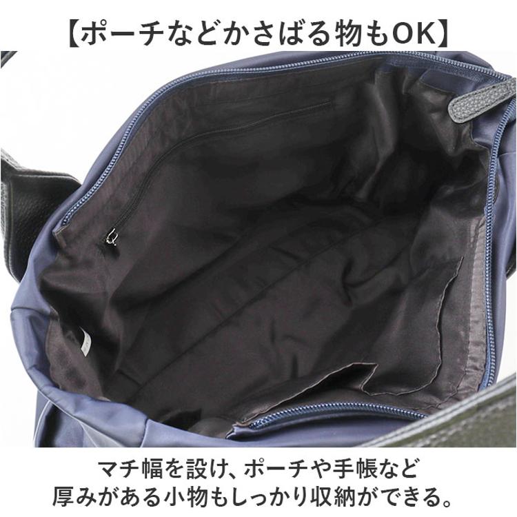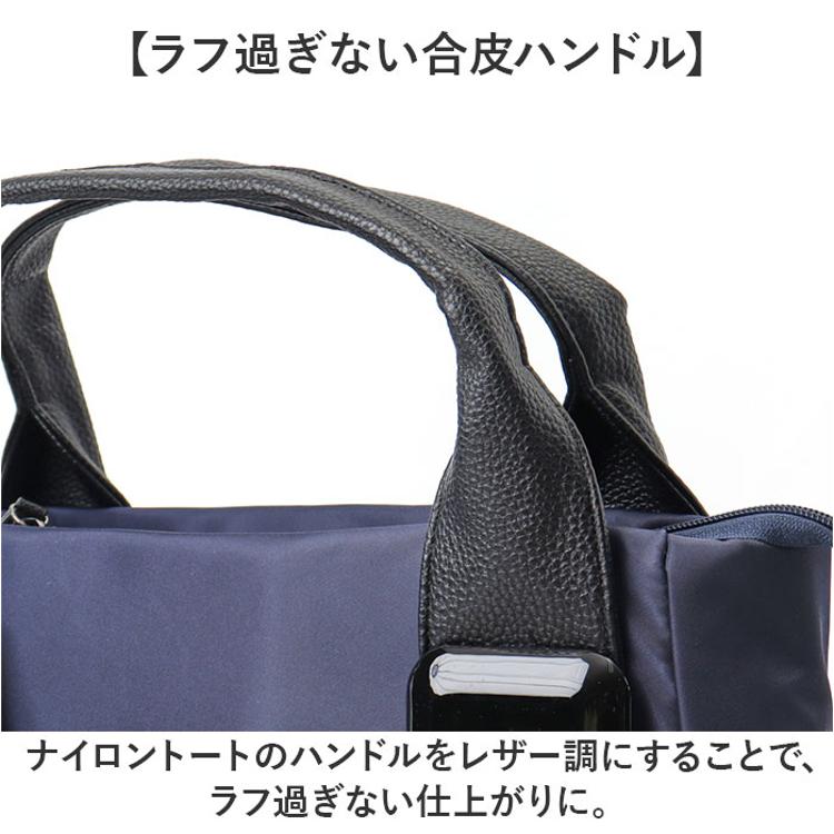 ・ナイロントートのハンドルをレザー調にすることで、ラフ過ぎない仕上がりに。