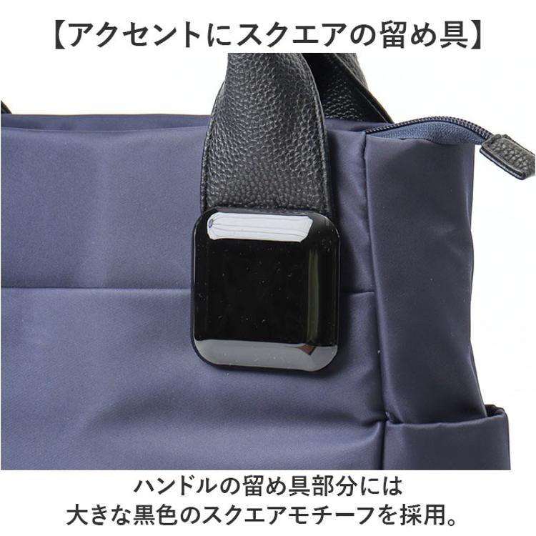 ・ハンドルの留め具部分には大きな黒色のスクエアモチーフを採用。