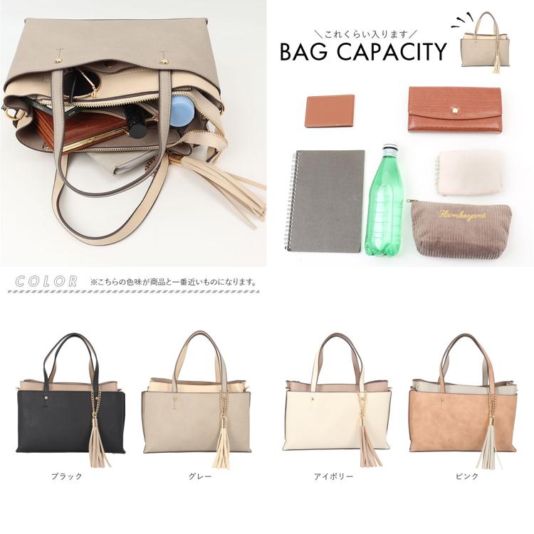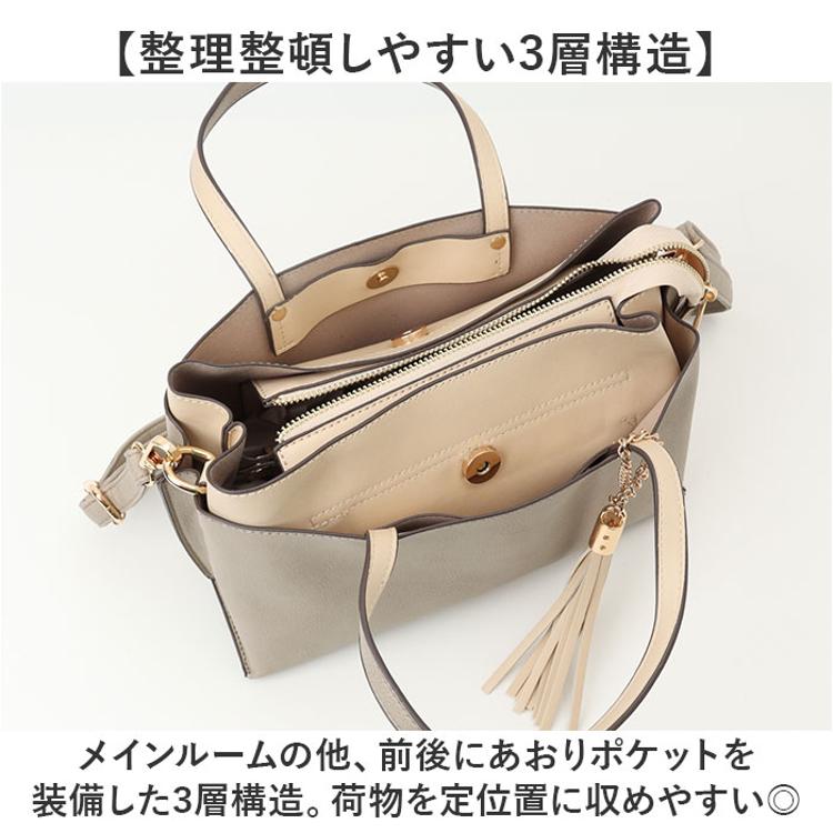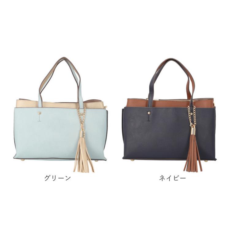 トートバッグ レディース 通販 ショルダーバッグ 2WAY 手提げバッグ バイカラーバッグ ツートンバッグ 斜めがけバッグ 肩掛け タッセルチャーム 長さ調節可能 バッグ かばん おしゃれ