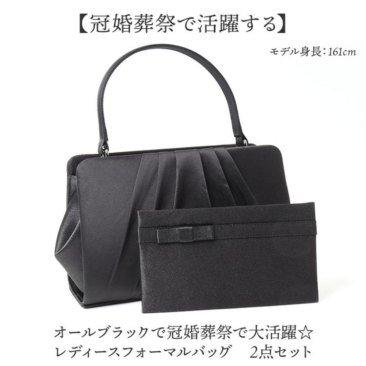 ・オールブラックで冠婚葬祭で大活躍☆レディースフォーマルバッグ 2点セット