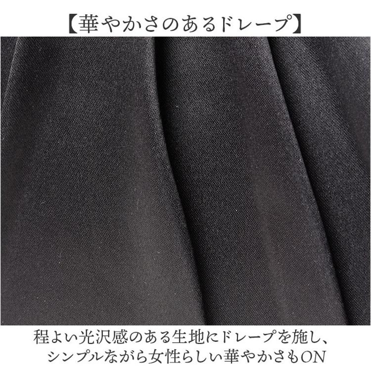 ・程よい光沢感のある生地にドレープを施し、シンプルながら女性らしい華やかさもON