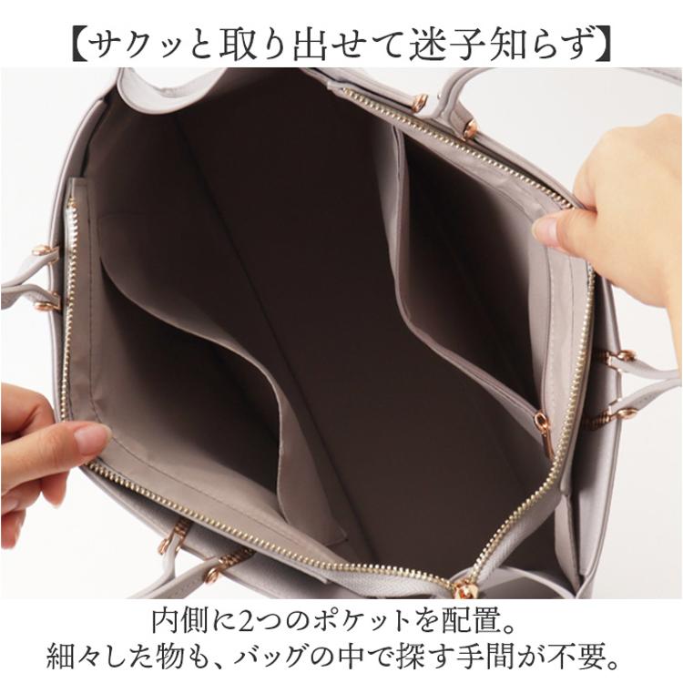 ・内側に2つのポケットを配置。細々した物も、バッグの中で探す手間が不要。