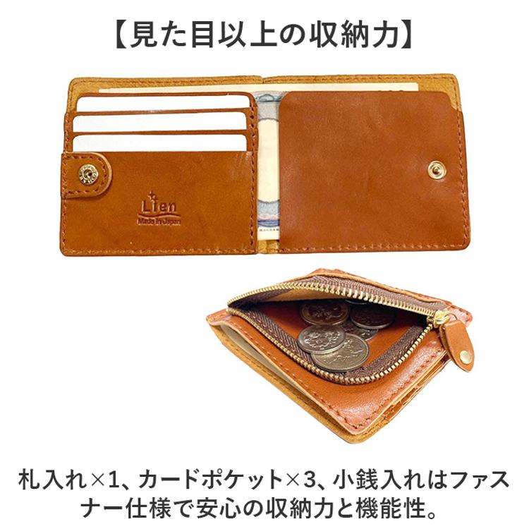 財布 二つ折り 本革 日本製 通販 二つ折り財布 2つ折り財布 折りたたみ財布 折り財布 本革財布 牛革財布 メンズ レディース 革 レザー カウレザー L字ファスナー 薄い コンパクト Lien