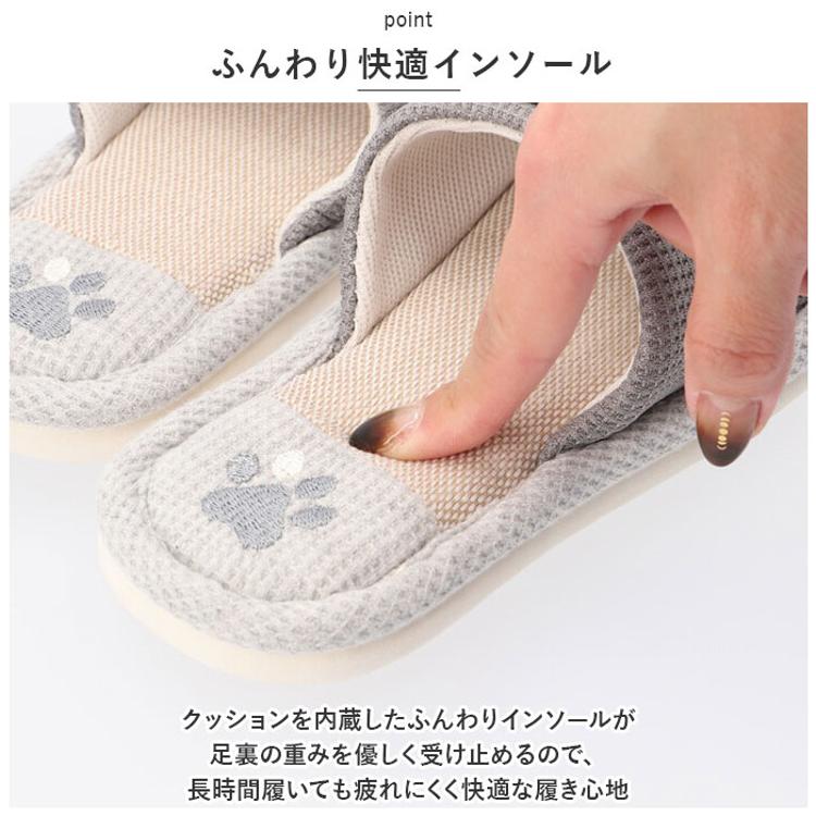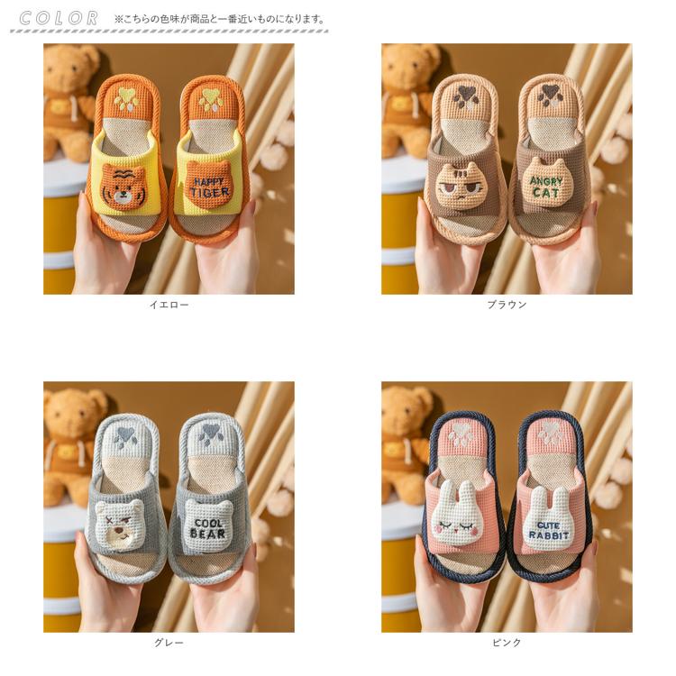 ・スリッパ右足には表情豊かなアニマルフェイス。左足には「HAPPY TIGER」・「CUTE RABBIT」など動物にちなんだタイポグラフィーを配置。さりげなく並べておくだけで玄関が優しい和み空間に早変わり。