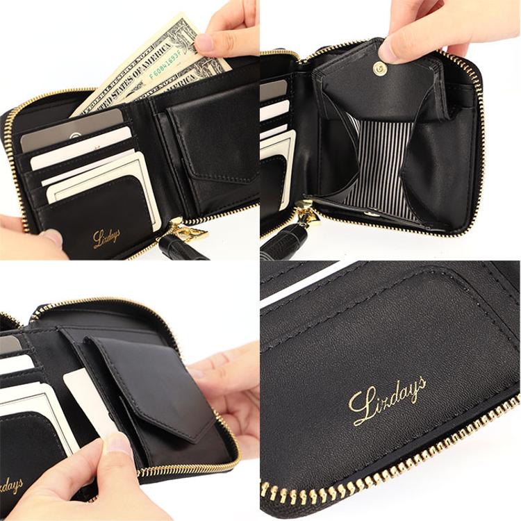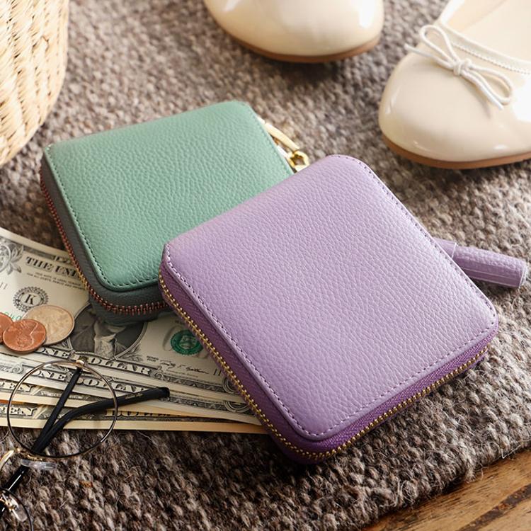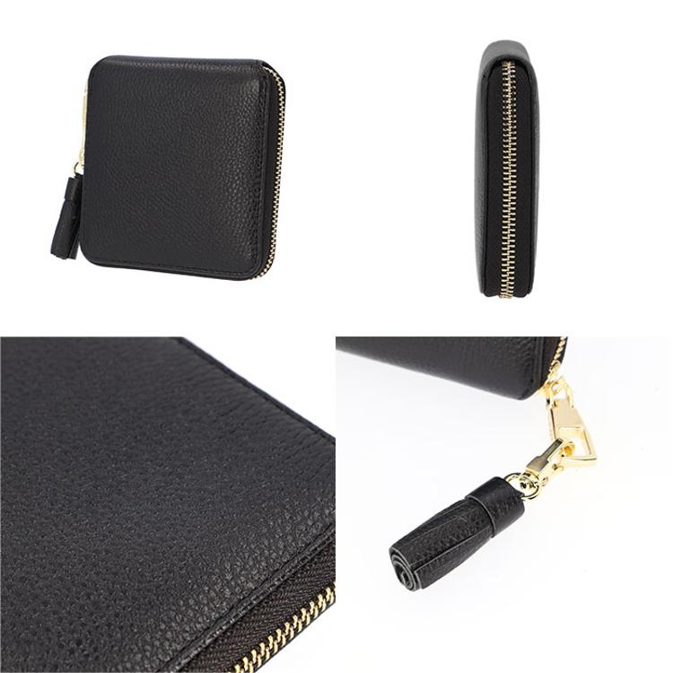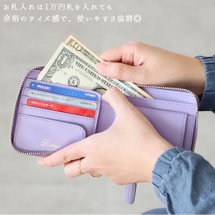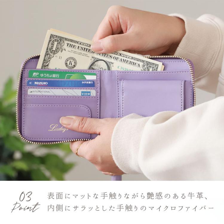 ・開口部は大きく開くラウンドファスナー式。内側にお札入れ×1、スナップボタン式の小銭入れ×1、カードポケット×4、フリーポケット×2を装備!