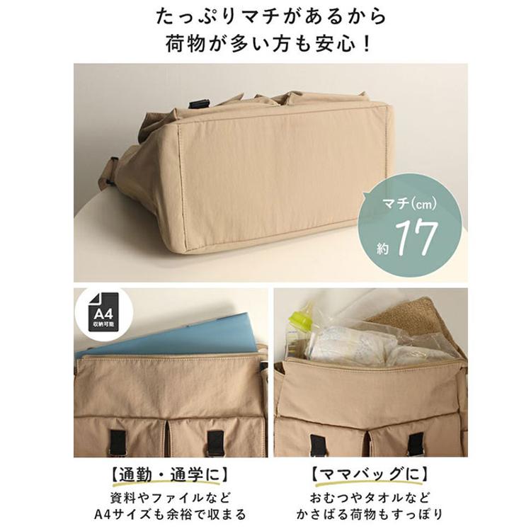 ・A4OK、資料やファイルもIN。おむつやタオルも収まり、通勤通学用やマザーズバッグにも。