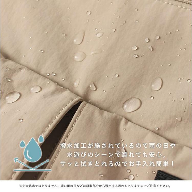・汚れや水滴を弾きやすい、撥水加工を施したナイロン生地。お手入れも拭き取るだけ。