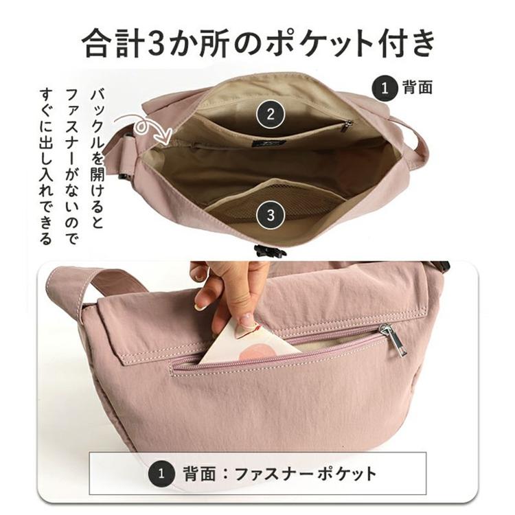 lizdays リズデイズ ショルダーバッグ lz-70519 通販 斜めがけバッグ フラップバッグ ハーフムーンバッグ 肩掛け レディース 撥水 軽量 大容量 B5 ナイロン 半月型 三日月 舟形 大人 旅行