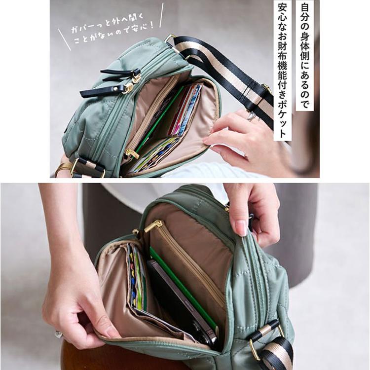 LIZDAYS ショルダーバッグ LZ-70523 通販 リズデイズ ウォレットバッグ ウォレットショルダー ショルダーバック 斜めがけバッグ お財布ショルダー お財布ポシェット ナイロン キルティング レディース 軽量 軽い 撥水 旅行 きれいめ シンプル