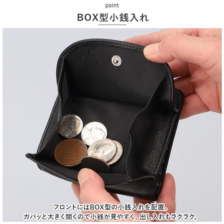 ・フロントにはBOX型の小銭入れを配置。ガバッと大きく開くので小銭が見やすく、出し入れもラクラク。