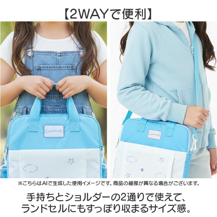 ・手持ちとショルダーの2通りで使えて、ランドセルにもすっぽり収まるサイズ感。