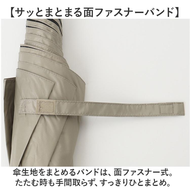 ・傘生地をまとめるバンドは、面ファスナー式。たたむ時も手間取らず、すっきりひとまとめ。