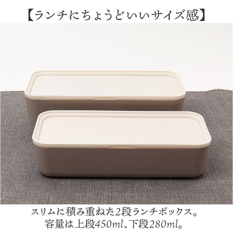 ・スリムに積み重ねた2段ランチボックス。容量は上段450ml、下段280ml。