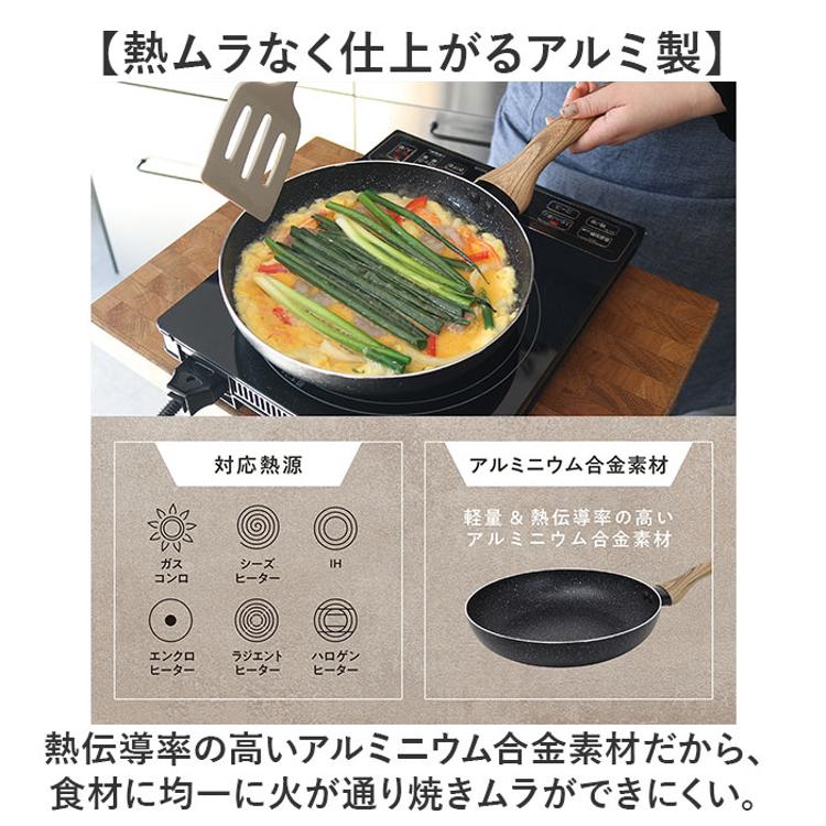 ・毎日の調理がラクになるマーブルコートの24cm浅型フライパン。