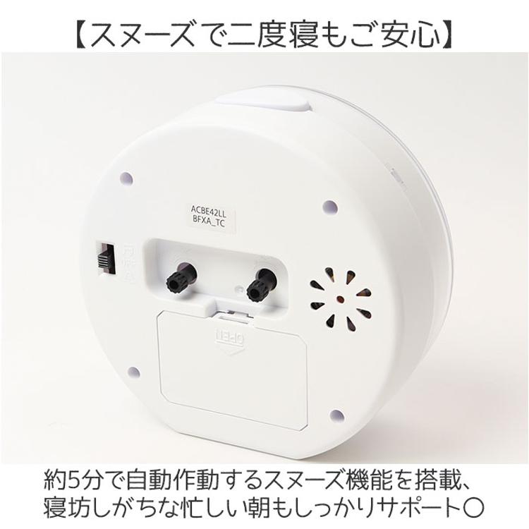 ・約5分で自動作動するスヌーズ機能を搭載、寝坊しがちな忙しい朝もしっかりサポート〇