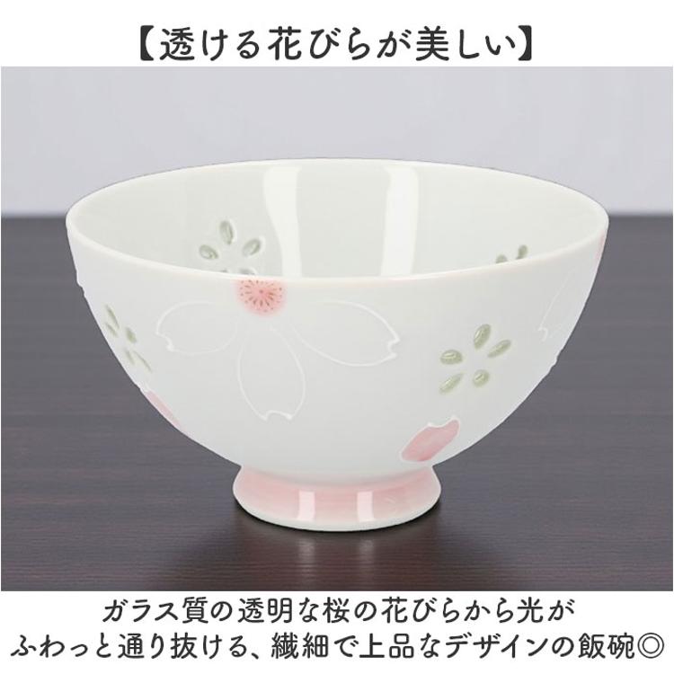 ・ガラス質の透明な桜の花びらから光がふわっと通り抜ける、繊細で上品なデザインの飯碗◎