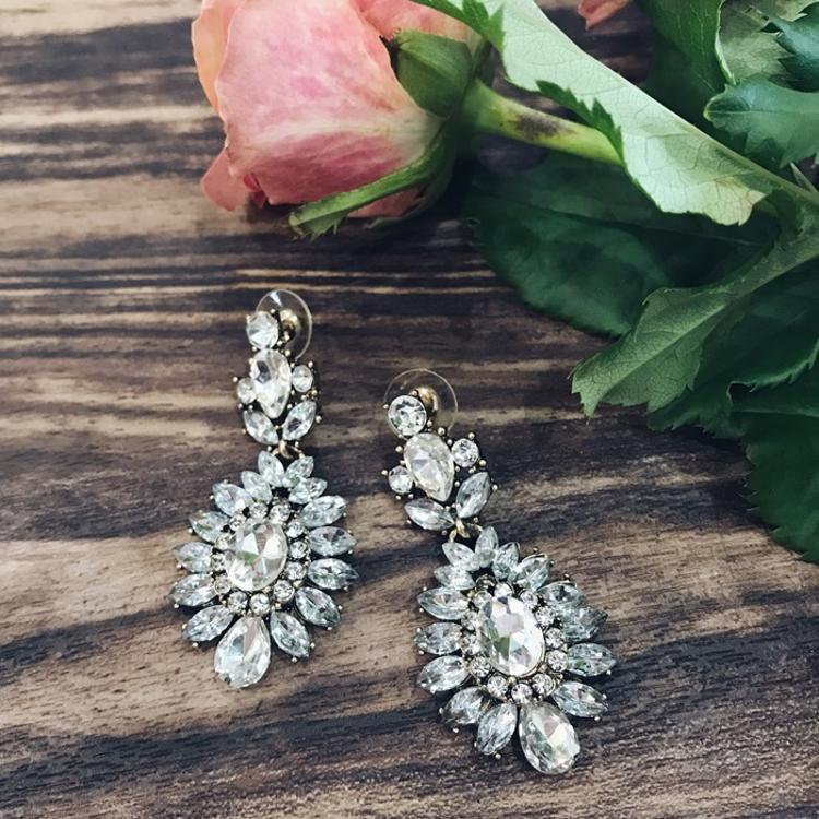 ・ヴィンテージ加工をしたゴールドの地金に、マーキスカットの大粒のクリアストーンのモチーフがキラキラと輝く