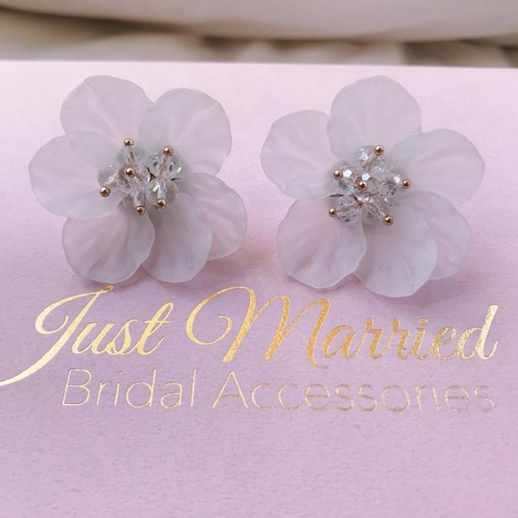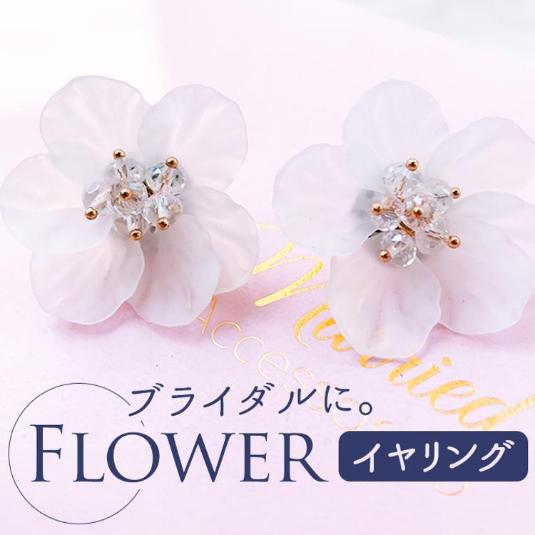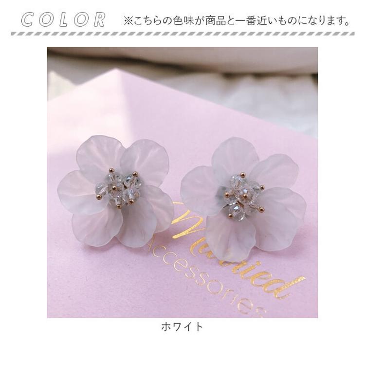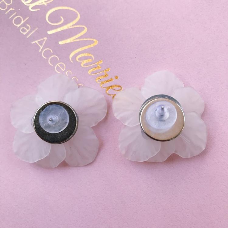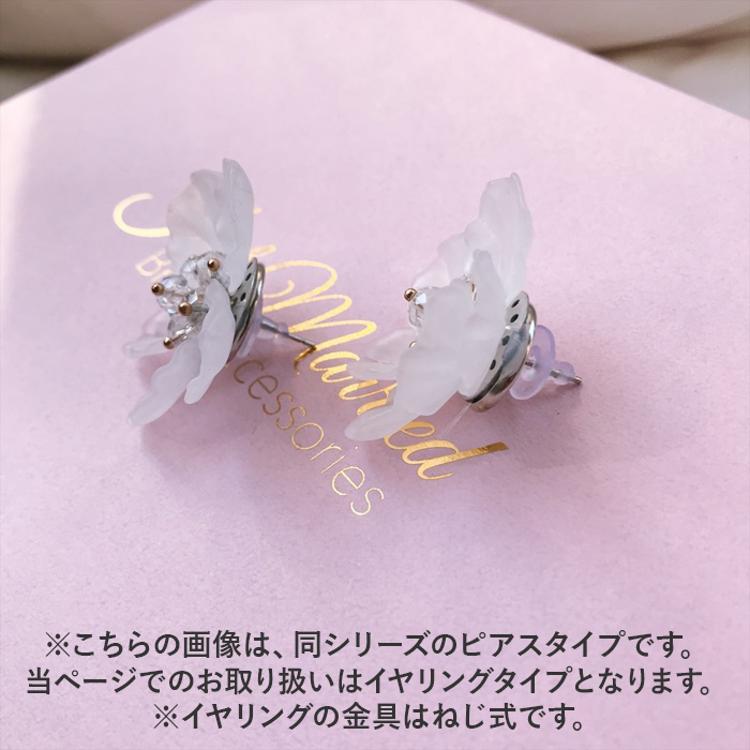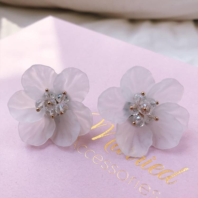 ・すりガラスのような花びらの大振りフラワーモチーフが軽やかで華やかなイヤリング/ピアス。
