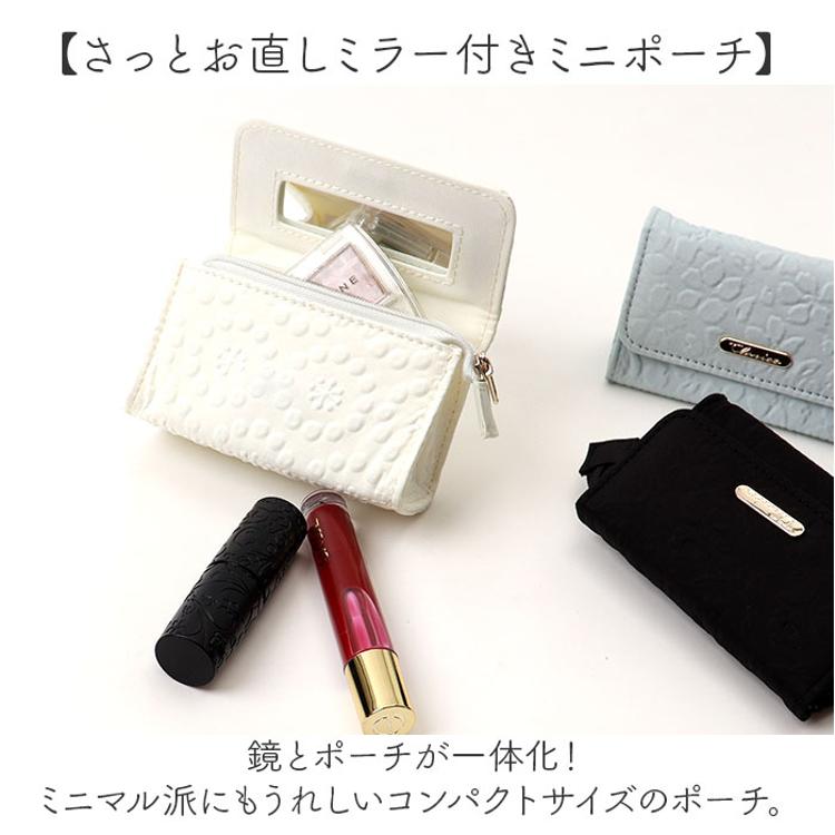 ・鏡とポーチが一体化!ミニマル派にもうれしいコンパクトサイズのポーチ。