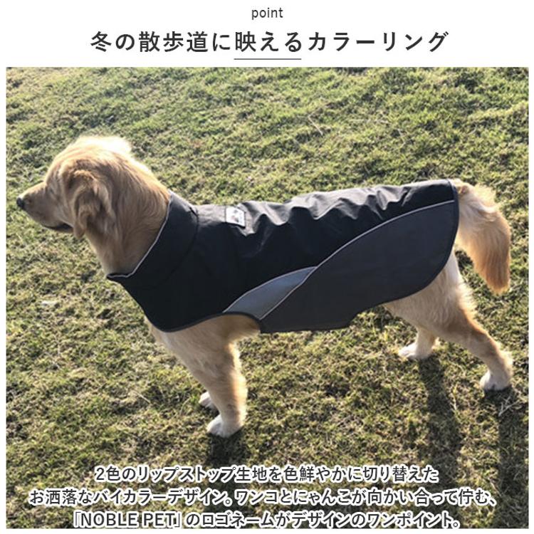 ・2色のリップストップ生地を色鮮やかに切り替えたお洒落なバイカラーデザイン。ワンコとにゃんこが向かい合って佇む、「NOBLE PET」のロゴネームがデザインのワンポイント。