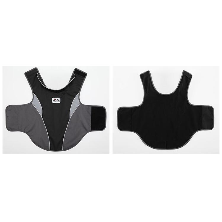 ・両肩からウェアの背中にかけて、自動車のライトにキラリと光るリフレクター素材のラインを配置。薄暗い雨の日や夜のお散歩もより安全に。