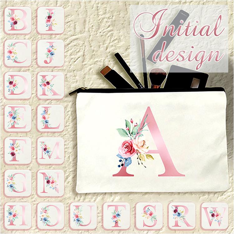 ・ナチュラルなホワイトカラーのコットン生地を使用。花柄と一緒にプリントされた、イニシャルデザインがアクセント。