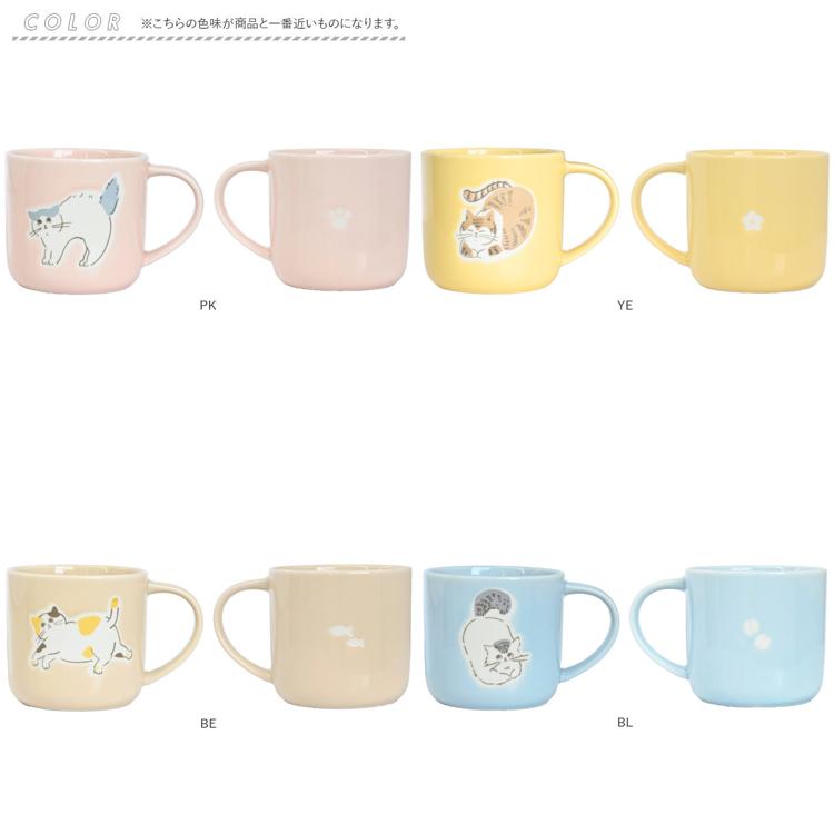 ・淡いパステルカラーの釉薬に、手書き風の猫を優しいタッチで描きだしたシンプルなマグ。