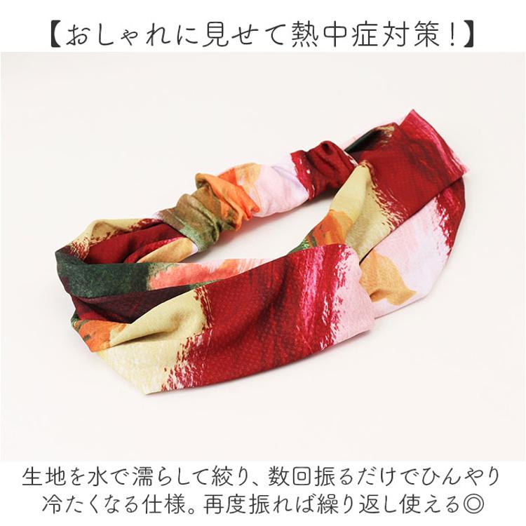 ・生地を水で濡らして絞り、数回振るだけでひんやり冷たくなる仕様。再度振れば繰り返し使える◎