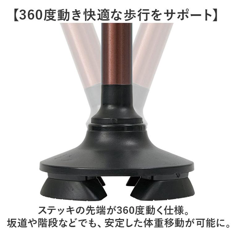 ・ステッキの先端が360度動く仕様。坂道や階段などでも、安定した体重移動が可能に。