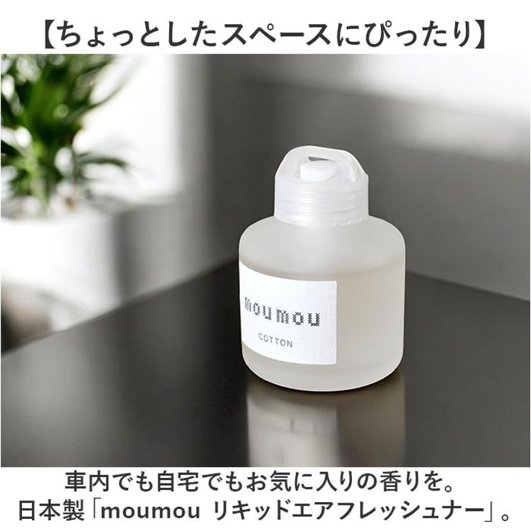 ・車内でも自宅でもお気に入りの香りを。日本製「moumou リキッドエアフレッシュナー」。