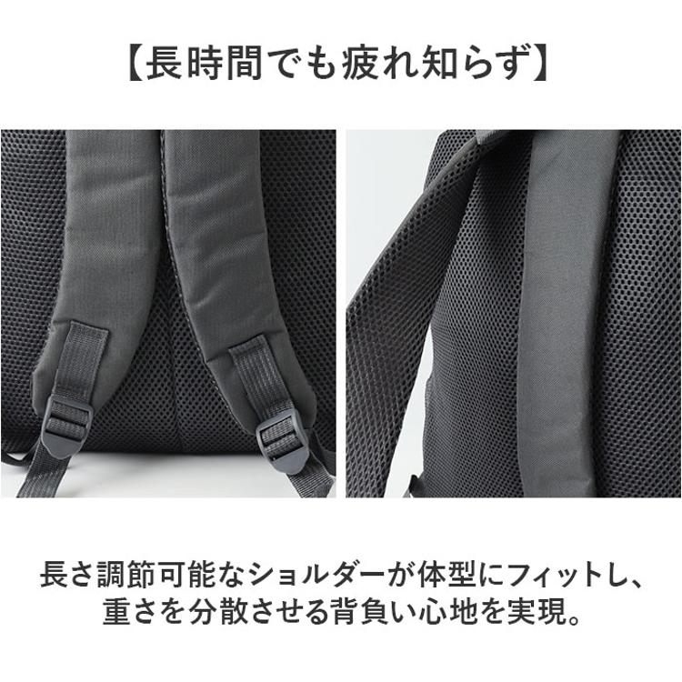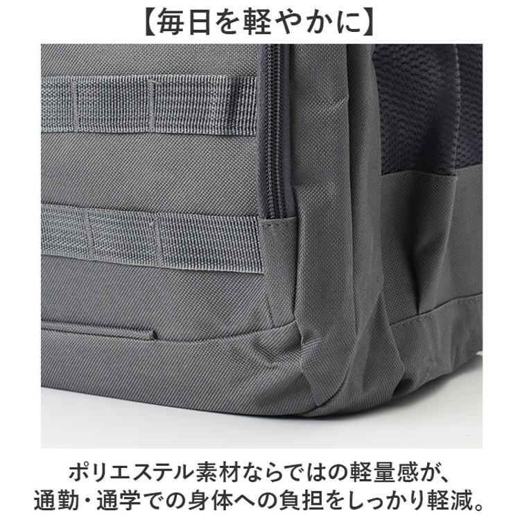 ・ポリエステル素材ならではの軽量感が、通勤・通学での身体への負担をしっかり軽減。