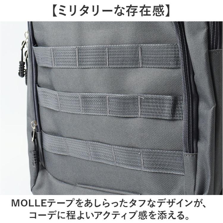 ・MOLLEテープをあしらったタフなデザインが、コーデに程よいアクティブ感を添える。