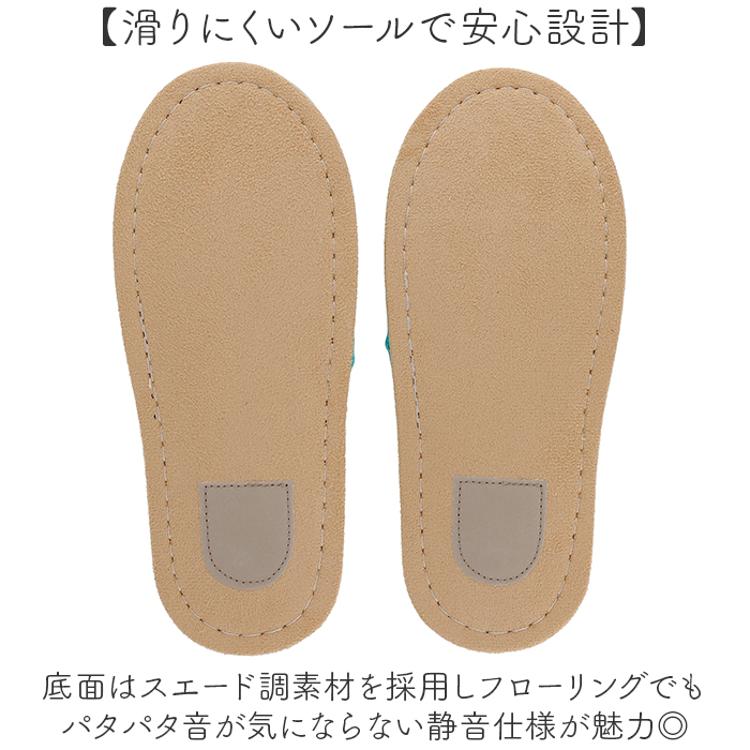 ・底面はスエード調素材を採用しフローリングでもパタパタ音が気にならない静音仕様が魅力◎