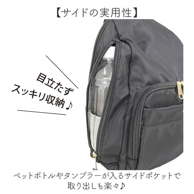 ・ペットボトルやタンブラーが入るサイドポケットで取り出しも楽々♪