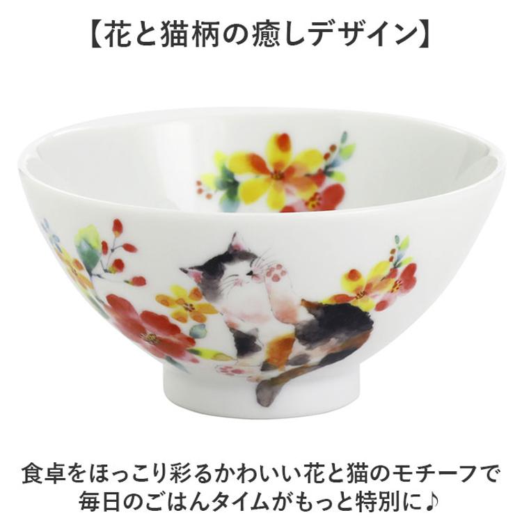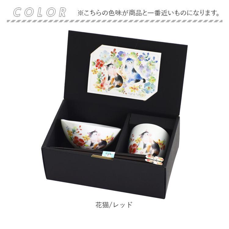 茶碗 セット 通販 日本製 飯碗 湯呑み お茶碗 お箸 ご飯茶碗 箸付き 箸 和食器 食器 セラミック藍 花猫 ネコ ねこ ギフト 贈り物 母の日 女性 誕生日 結婚記念日 両親 還暦祝い 可愛い かわいい おしゃれ