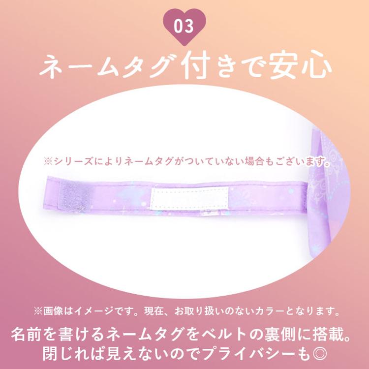 ・名前を書けるネームタグをベルトの裏側に搭載。閉じれば見えないのでプライバシーも◎※シリーズによりネームタグがついていない場合もございます。