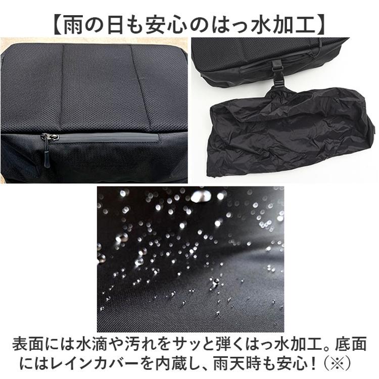 ・表面には水滴や汚れをサッと弾くはっ水加工。底面にはレインカバーを内蔵し、雨天時も安心!