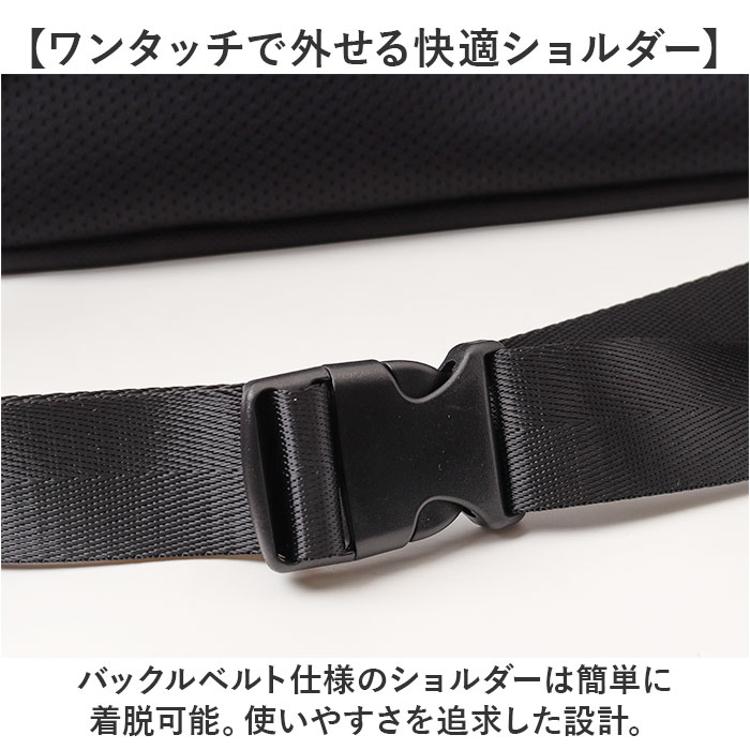 ・バックルベルト仕様のショルダーは簡単に着脱可能。使いやすさを追求した設計。