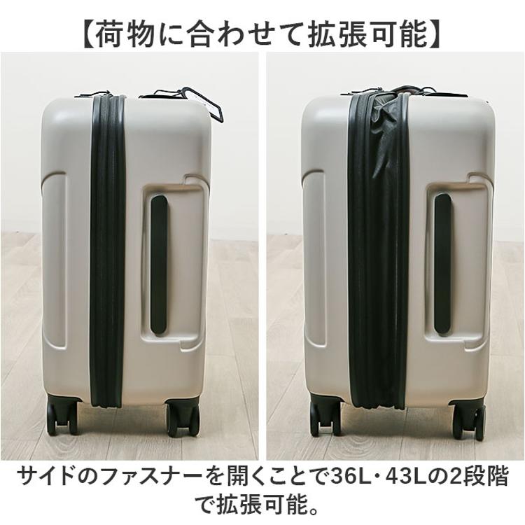 ・サイドのファスナーを開くことで36L・43Lの2段階で拡張可能。