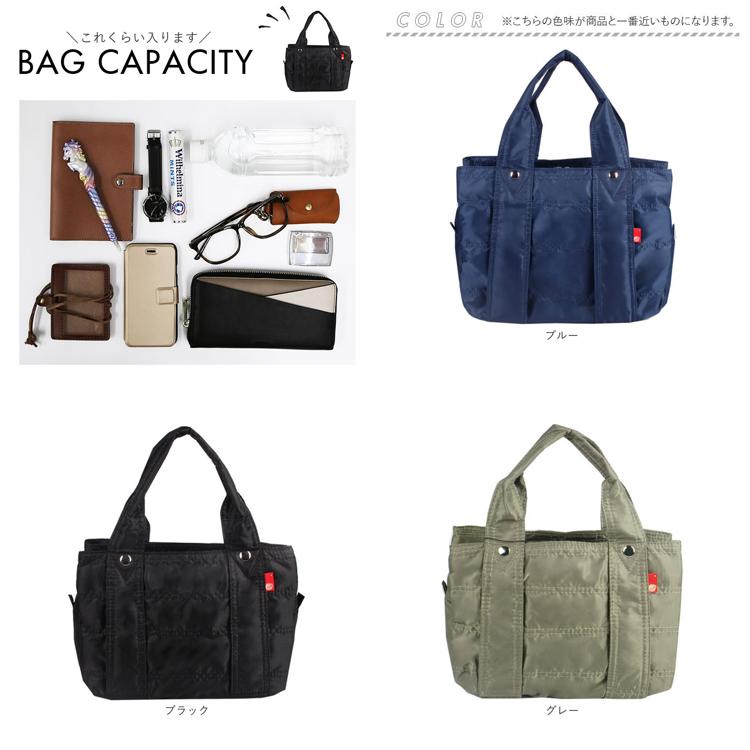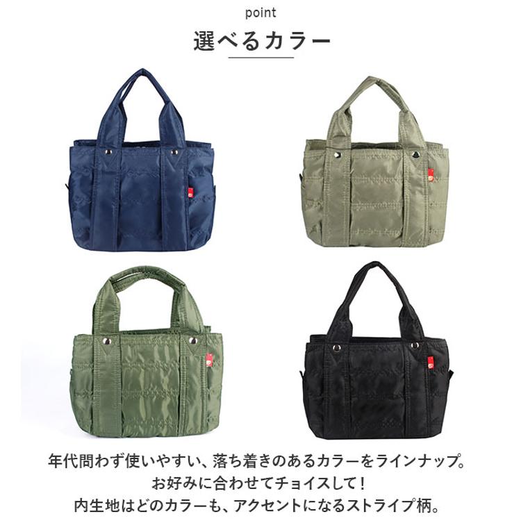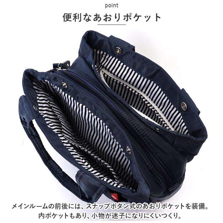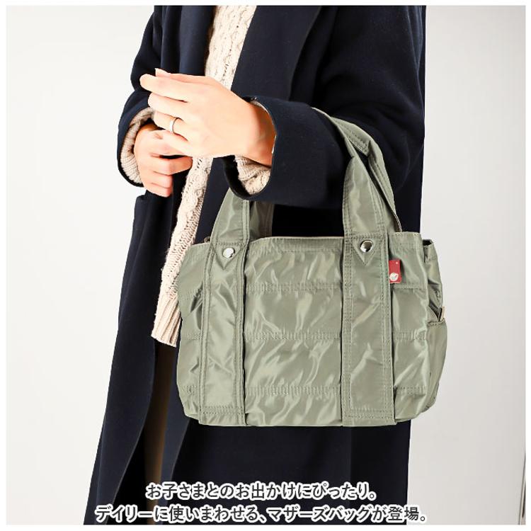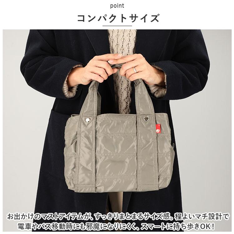 ・程よい光沢があるナイロン素材を使用したトートバッグ。コーデを選ばず使いやすいデザインが魅力。
