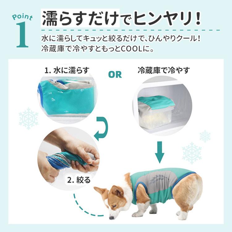 ・水に濡らしてキュッと絞ってから着せてあげれば、気化熱が身体の熱を逃がし、ひんやりクール。