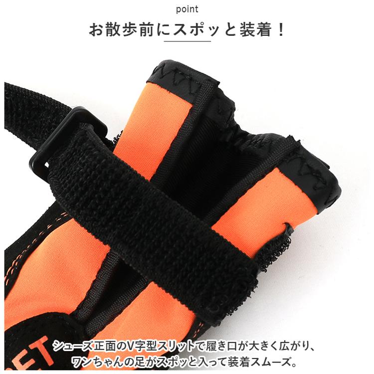 ・シューズ正面のV字型スリットで履き口が大きく広がり、ワンちゃんの足がスポッと入って装着スムーズ。
