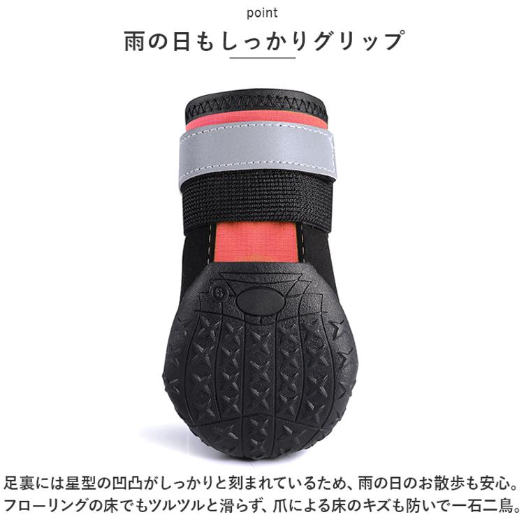 ・足裏には星型の凹凸がしっかりと刻まれているため、雨の日のお散歩も安心。フローリングの床でもツルツルと滑らず、爪による床のキズも防いで一石二鳥。