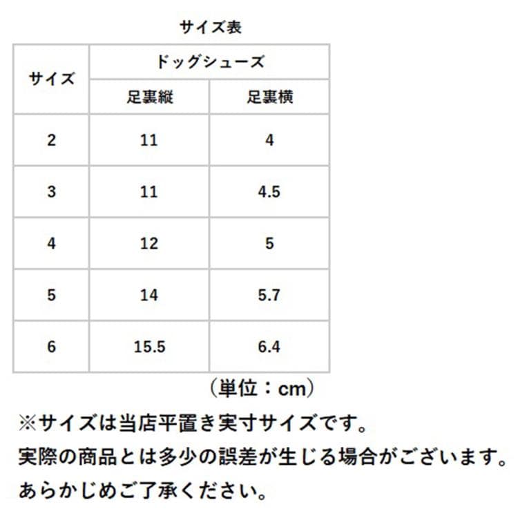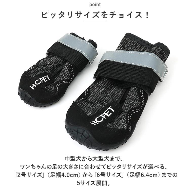 ・中型犬から大型犬まで、ワンちゃんの足の大きさに合わせてピッタリサイズが選べる、「2号サイズ」(足幅4.0cm)から「6号サイズ」(足幅6.4cm)までの5サイズ展開。