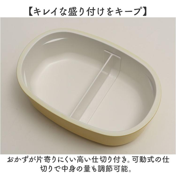 ・おかずが片寄りにくい高い仕切り付き。可動式の仕切りで中身の量も調節可能。