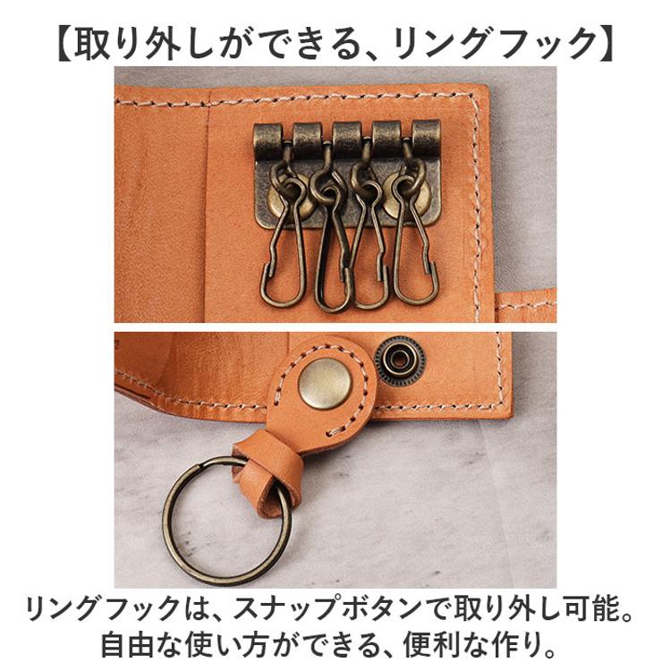 4連のキーチェーンと取り外し可能リングフックが1箇所。スマートキーも入る収納力◎